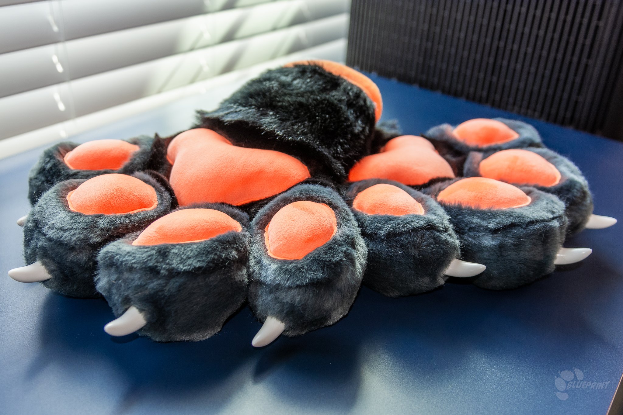 Paws may be stored in a container or bag on their own or with other costume/fursuit parts. We do not recommend leaving your paws out in the open for long periods of time as they may collect dust and odors.